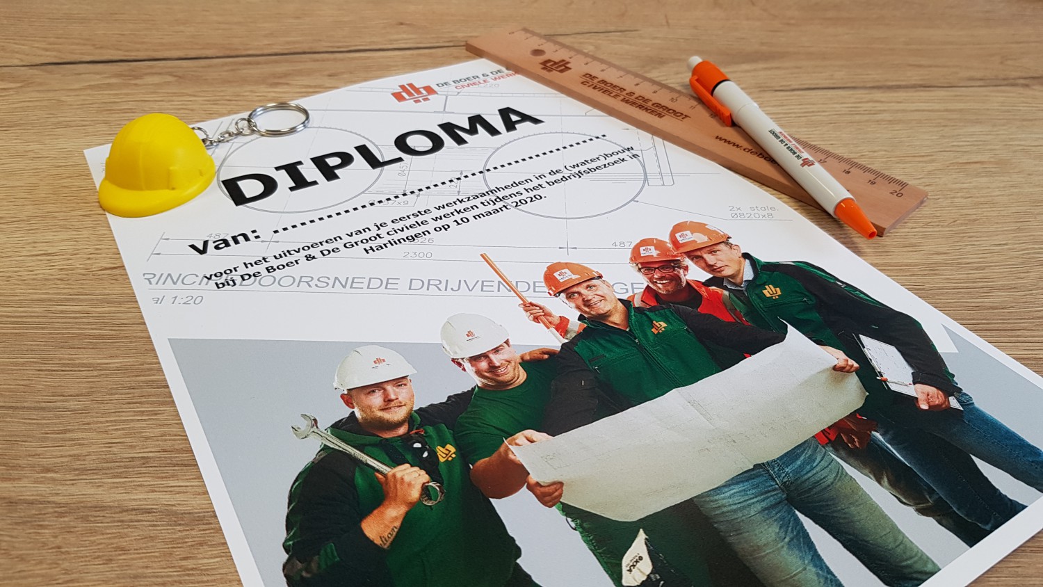 Op dinsdag 10 maart bezochten ruim vijftig leerlingen van basisschool Sint Ludgerus uit Workum het kantoor van De Boer & De Groot in Harlingen. Middels diverse opdrachten, waaronder hoogtemeten en tekenen op schaal, maakten de leerlingen kennis met het werken in de (water)bouw. In het kader van Bewust Veilig werken werden de jongens en meisjes uit groep 6, 7 en 8 ook getest op hun kennis met betrekking tot het dragen van Persoonlijke Beschermingsmiddelen. Voorzien van de nodige nieuwe kennis en ervaringen zijn alle leerlingen dan ook geslaagd voor hun 'diploma' en kijken we terug op een leuk bezoek!