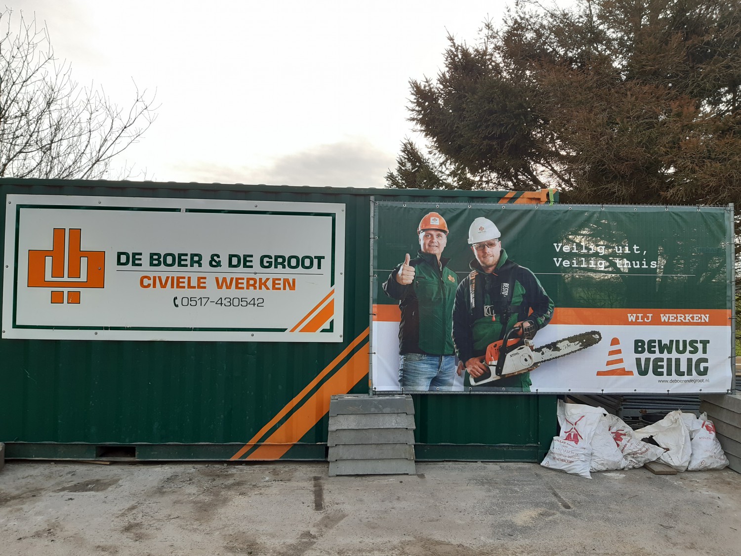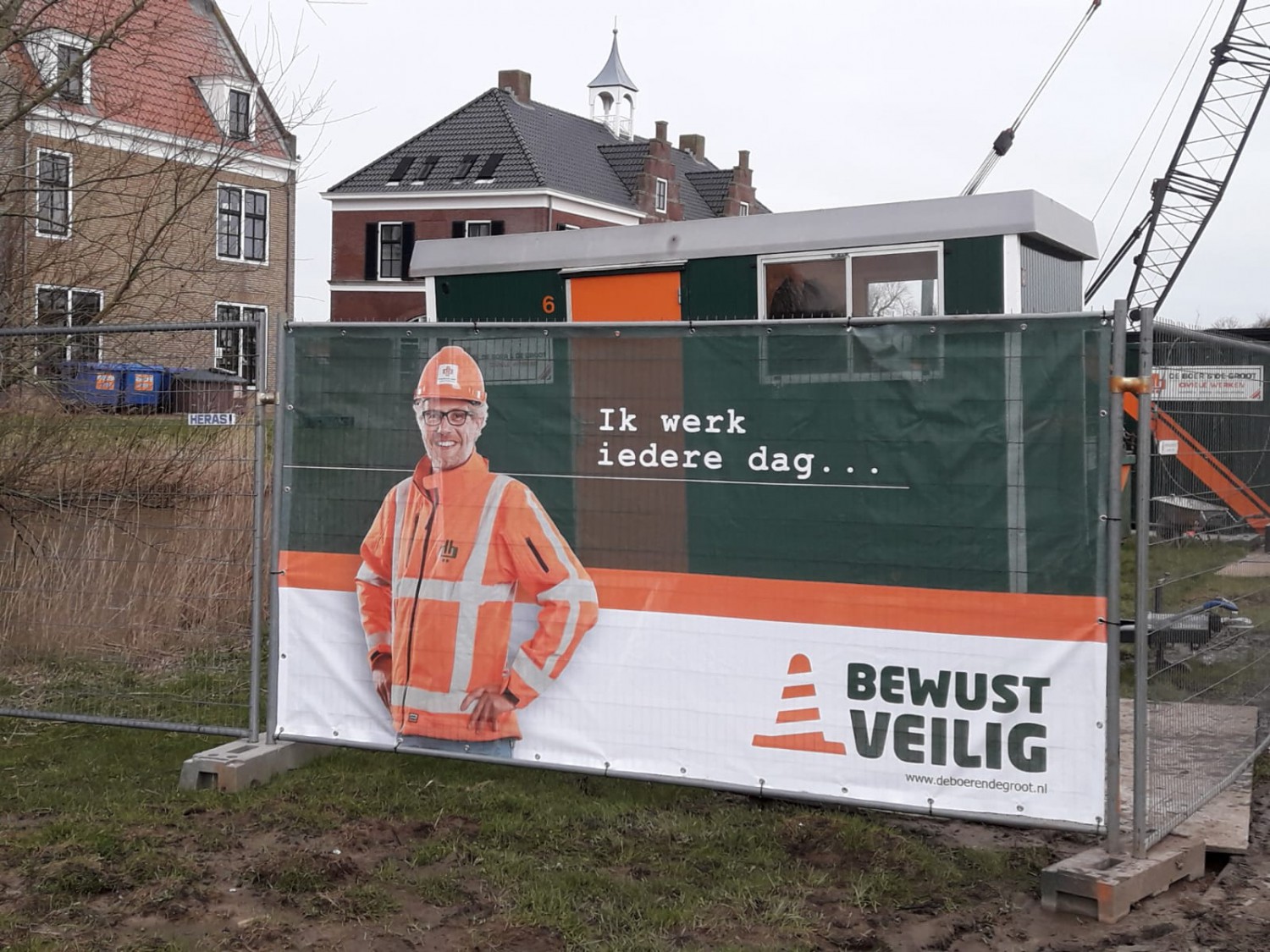 De landelijke Bewust Veilig dag in de bouwsector gaat niet door wegens het huidige coronavirus en bijbehorende maatregelen. De Boer & De Groot onderneemt dit jaar daarom geen activiteiten op dit gebied. Wel zijn vanaf vandaag onze nieuwe bouwhekdoeken in gebruik genomen om onze medewerkers (maar ook de omgeving) er aan te herinneren te letten op hun eigen veiligheid en die van hun collega's op de werkvloer. Zeker in deze bijzondere tijd waarin extra maatregelen gelden op het gebied van hygiëne en sociale contacten. Zowel op kantoor als op de projectlocaties werken wij dan ook volledig conform de richtlijnen van het kabinet en RIVM en houden de situatie en ontwikkelingen nauwlettend in de gaten.