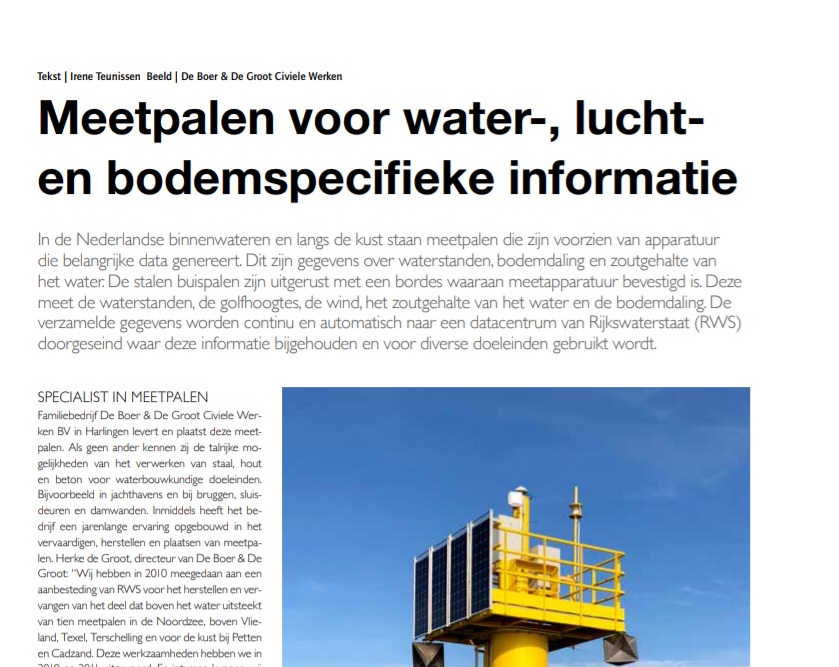 In GWW magazine 5-2019 staat een artikel over De Boer & De Groot civiele werken en een van onze specialisaties, te weten: het onderhouden, herstellen, realiseren en plaatsen van meetpalen. Meer weten? Klik hier voor het volledige artikel.
