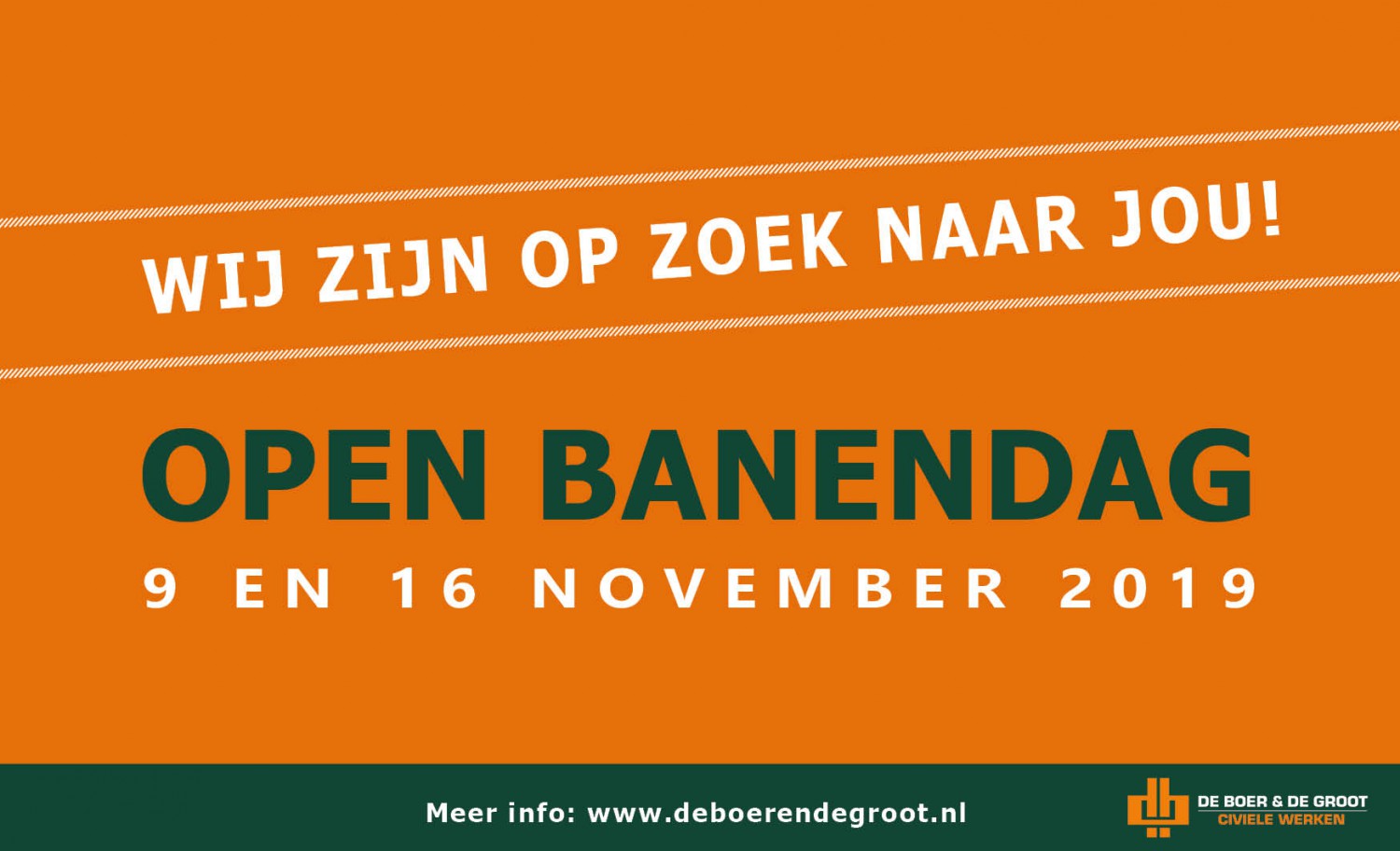 Ben je op zoek naar een andere baan, maar is het schrijven van een sollicitatiebrief en CV niet echt jouw ding? Kom dan naar onze open banendag! In een informele sfeer kun je op deze dag meer te weten komen over ons bedrijf en de openstaande functies, en kijken we wat we voor elkaar kunnen betekenen. De koffie staat klaar op: