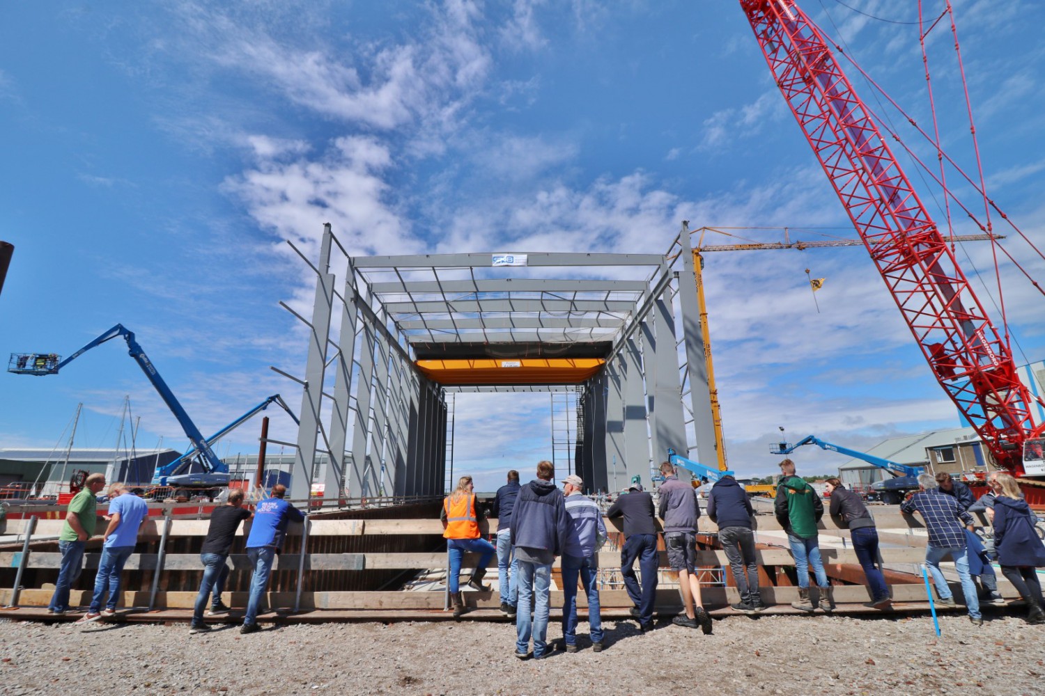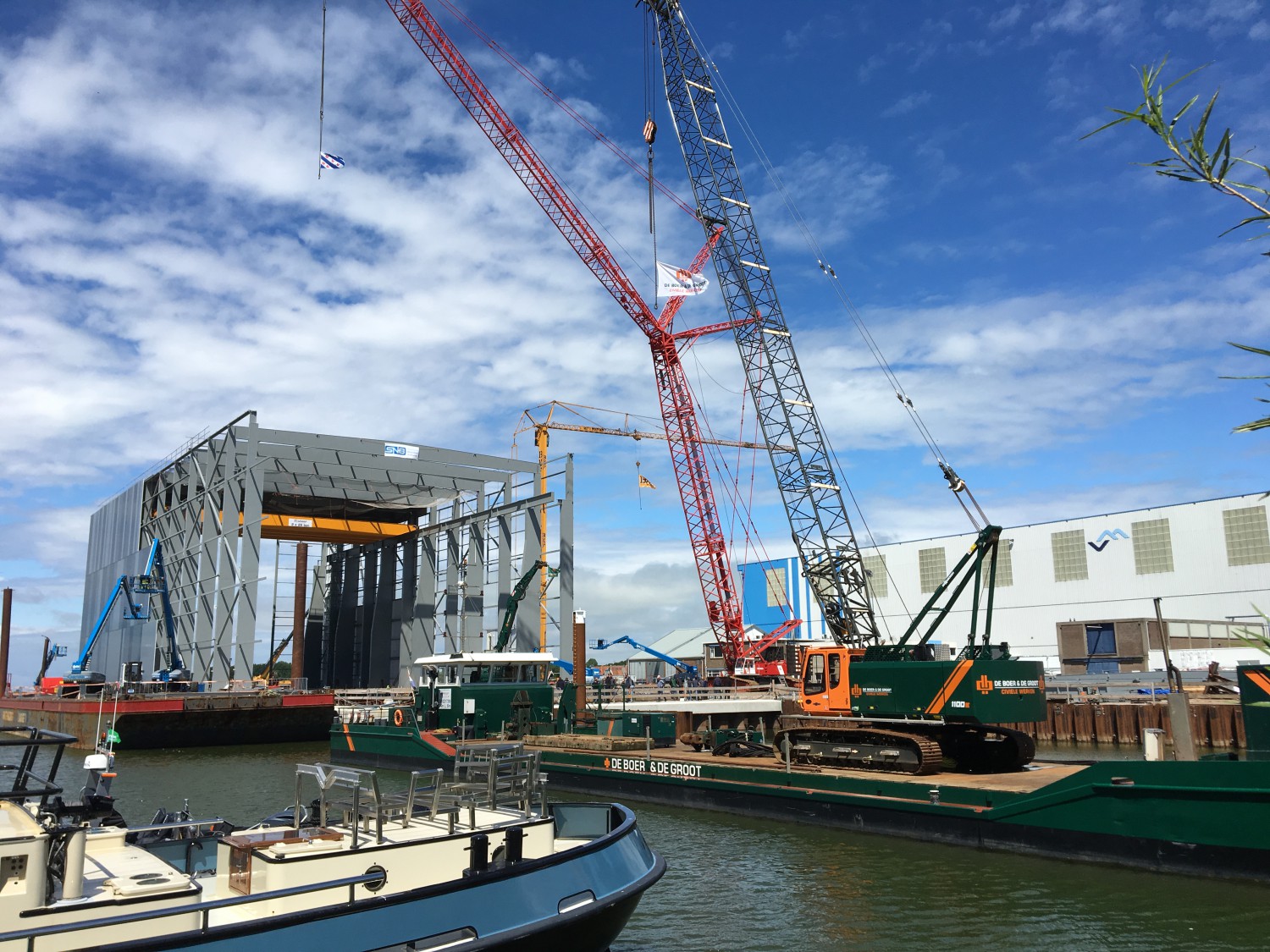 Zaterdag 15 juni 2019 stond in het teken van de Dag van de Bouw. De Boer & De Groot stelde samen met Jorritsma Bouw en Staalbouw Nagelhout deze dag het bouwterrein aan de Stranwei 6 te Makkum open voor bezoekers. Op deze locatie wordt gebouwd aan de tweede dokhal voor De Vries Scheepsbouw Makkum. Ondanks de regen was er veel belangstelling en hebben ruim 900 mensen de bouwplaats bezocht. Het was dan ook een zeldzame kans om de dokhal van dichtbij te komen bekijken. Gelukkig kwam 's middags de zon ook nog even tevoorschijn en kunnen we terugkijken op een zeer geslaagde dag.