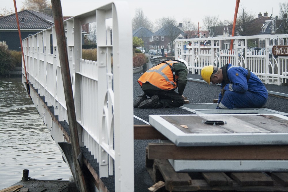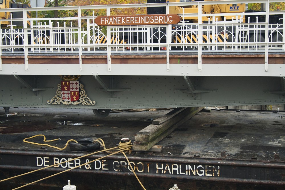 Op woensdag 23 november 2016 is de Franekereindsbrug in Harlingen weer teruggeplaatst op zijn draaipunt. De brug, welke is gebouwd in 1914, is in mei 2016 voor de eerste keer in z’n bestaan van zijn plek gehesen en vervoerd naar de restauratiehal van De Boer & De Groot. Hier is de brug door ons op vakkundige wijze gerestaureerd in opdracht van Monumentenstichting Harlingen.