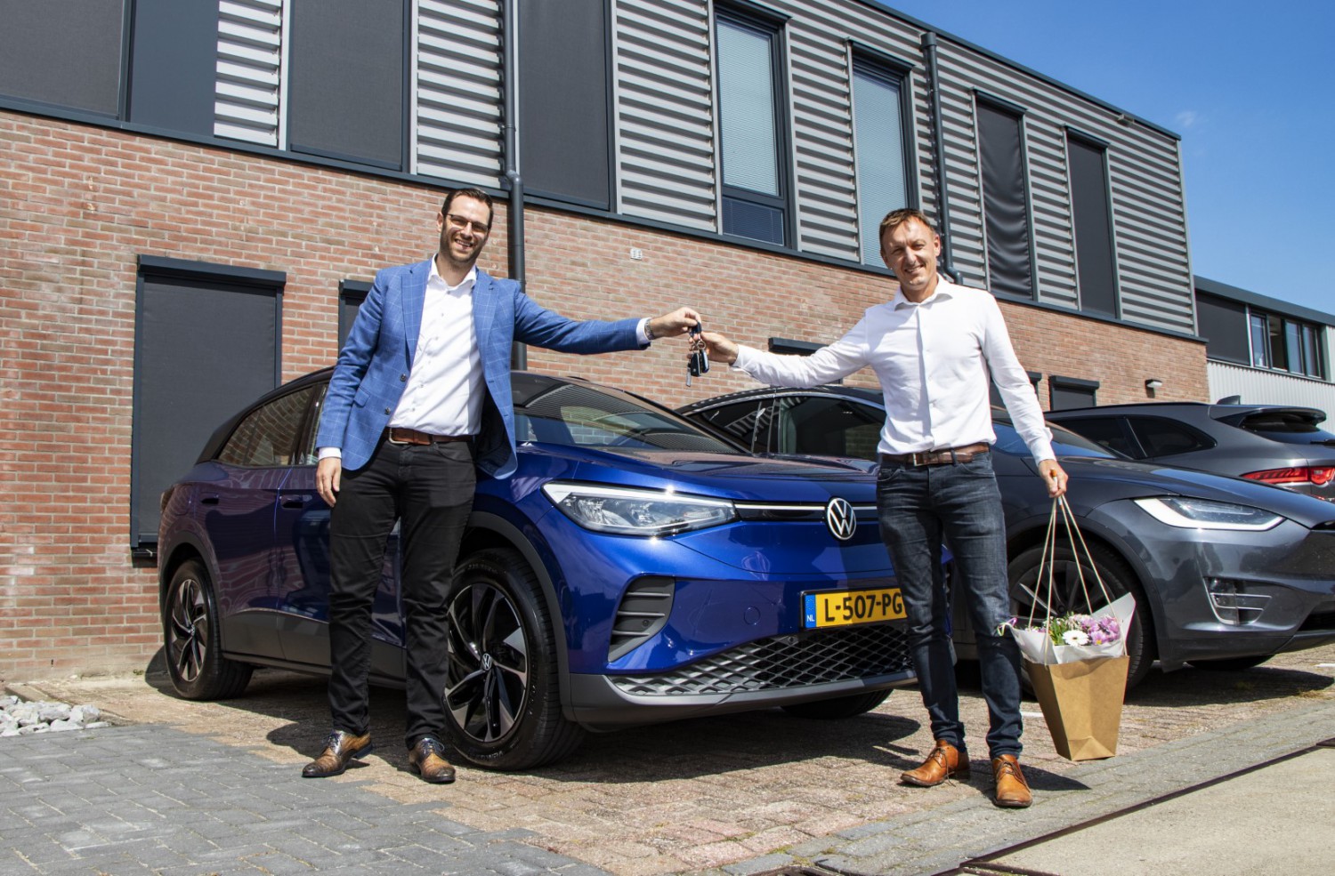 We zetten deze maand weer een mooie stap in het verder verduurzamen van ons wagenpark en het behalen van onze doelstellingen rondom het reduceren van onze CO-2 uitstoot. Diverse collega's stappen over op het rijden in een elektrische auto. Vandaag werd door autobedrijf Van den Brug een Volkswagen ID.4 afgeleverd.