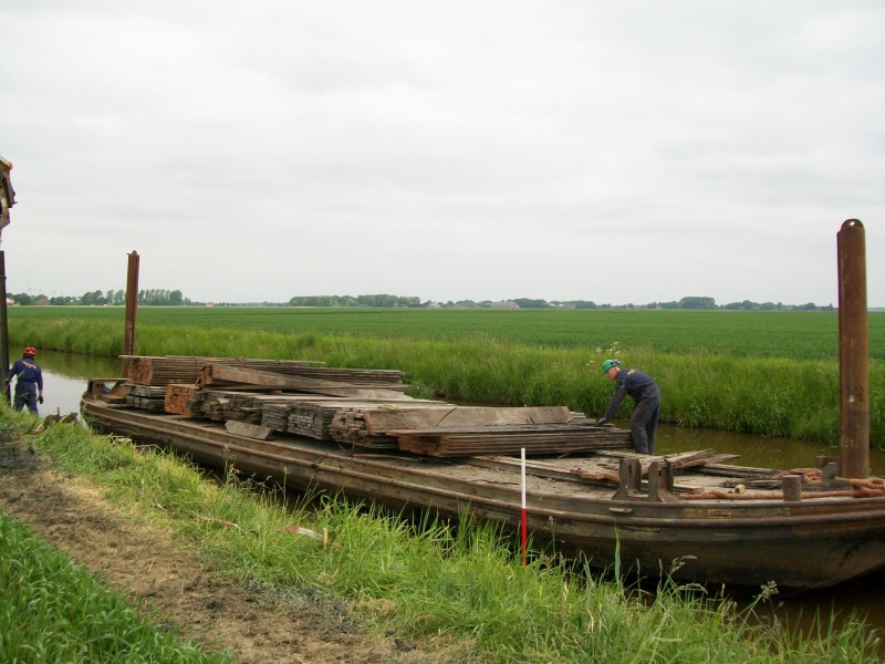 Aanbrengen verankerde houten- en stalen damwanden (totaal 5550 m1) met gording;